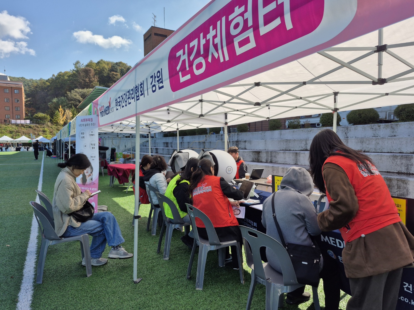 한국건강관리협회 강원특별자치도지부(본부장 고복희)는 11월 1일(토) 폴리텍대학 춘천캠퍼스에서 열린 ‘농협인 한마음대회’ 현장에서 참가자들의 건강한 생활을 응원하기 위해 건강체험 부스를 운영하였습니다.